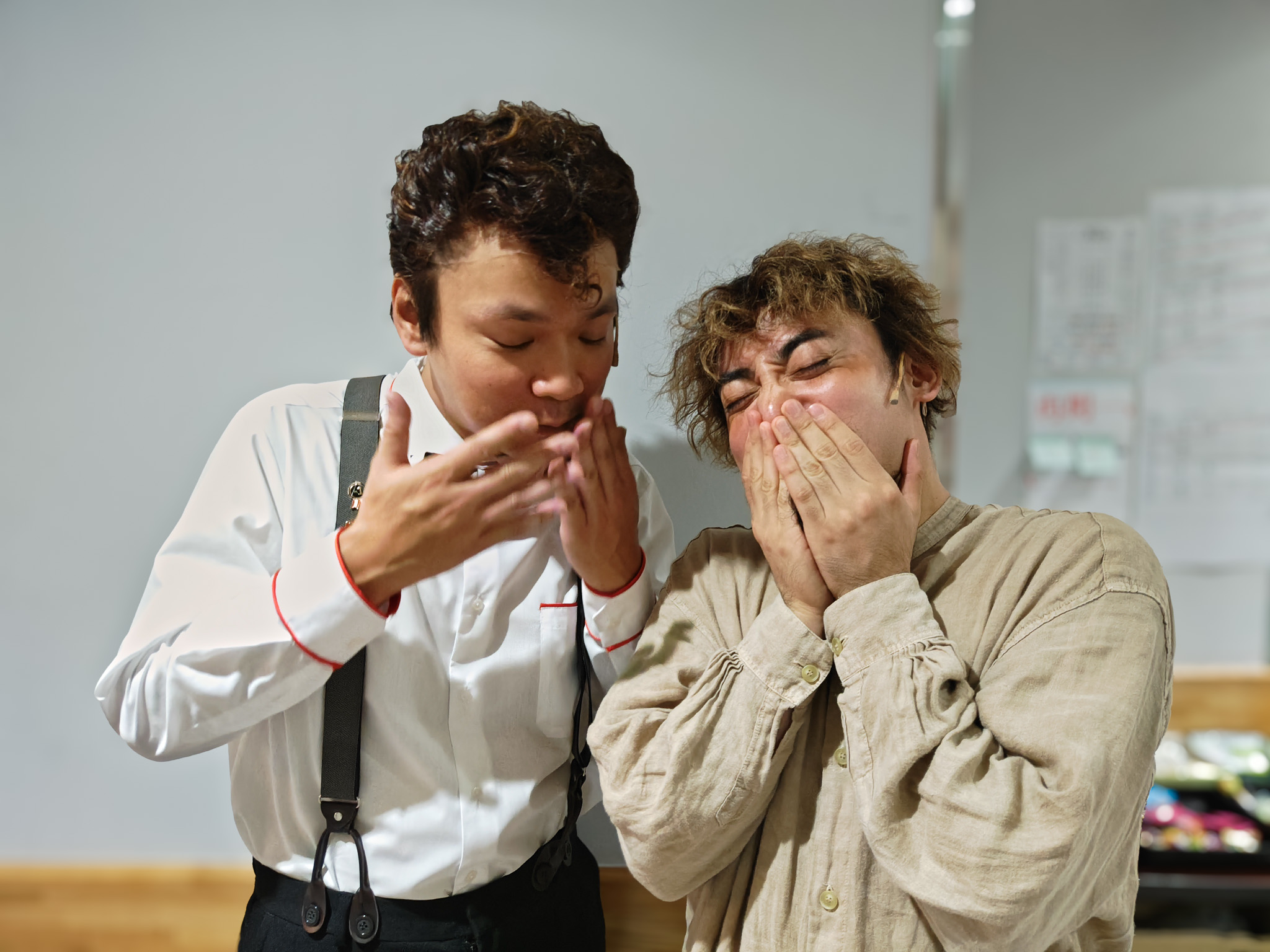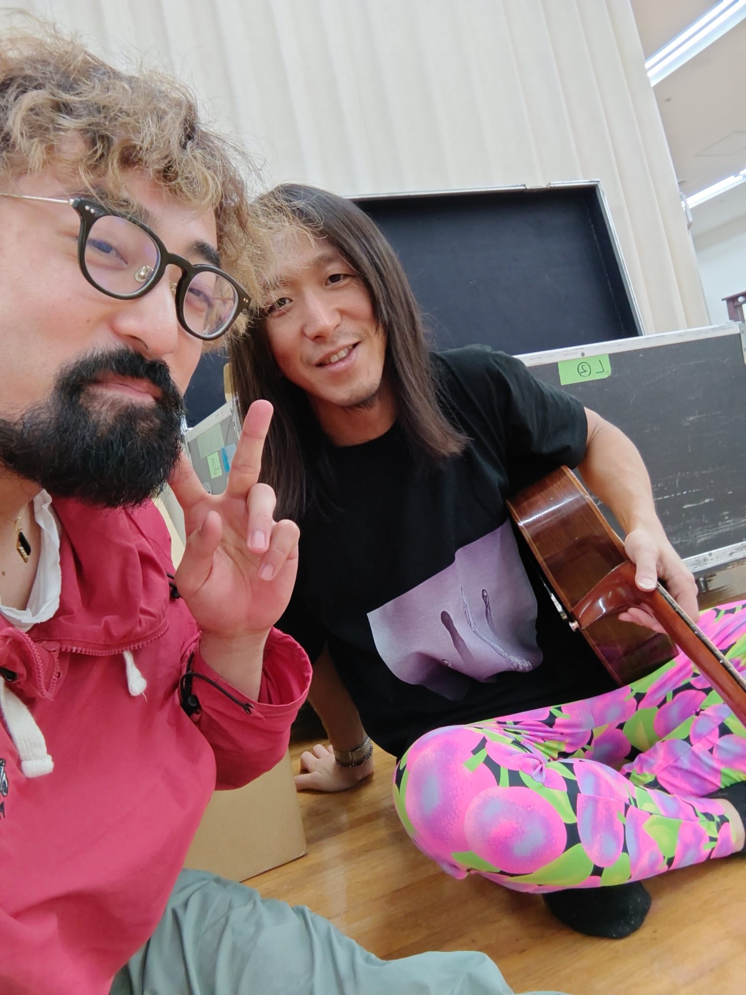 エイミ〜。稽古の初日からお互いのバイブスが合いすぎて、気がついたら隣にいた。